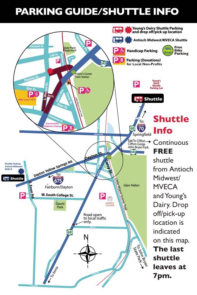 Make your visit to the Yellow Springs Street Fair easy and stress free. Shuttle Service is available from designated parking lots, with convenient drop off points near the festival. Shuttles run on various schedules throughout the day. Just be sure to be at the correct pick up and drop off points listed on the Shuttle Map. NOTE: Shuttles wait times may vary due to mandatory operator rest breaks. Thank you for your patience as they continue to service the festival.
