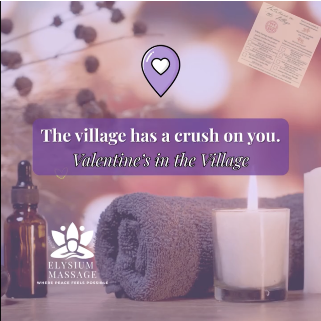 Get a FREE 30-minute add-on with any massage at Elysium Massage! when you use your Valentine’s in the Village punch card.