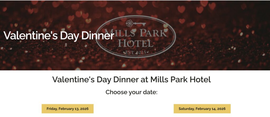 Celebrate love this Valentine’s Day with an unforgettable dining experience with the Event Center at Mills Park Hotel featuring a special menu presented by Ellie’s Restaurant. Enjoy a romantic, intimate atmosphere as you indulge in a specially curated menu designed to delight your palate.
